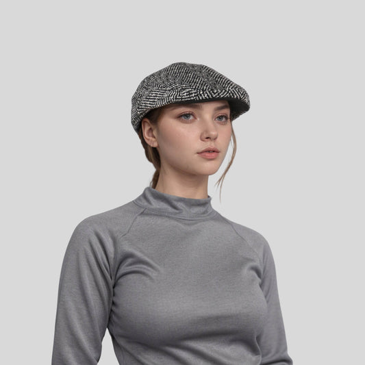 Classic Black & White Tweed Hat for Casual & Formal Wear