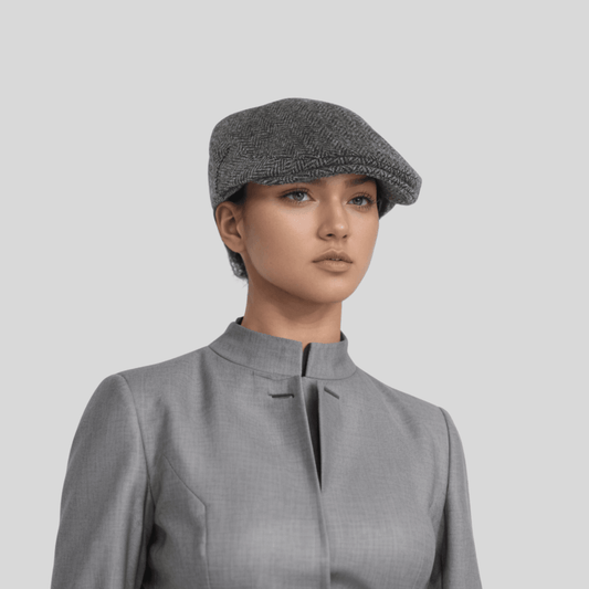 Unisex Flat Cap Pure Wool Herringbone Tweed Newsboy